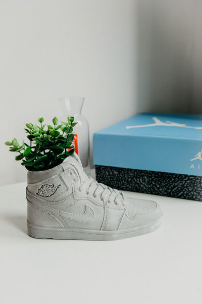 Slip your foliage into our Handmade Basketball Sneaker Trainer Plant Pot Vase. Whether faux or the real deal, our handmade concrete design will dress up any desk or living space. The perfect pot for Jumpman sneaker fans - and if you are sending this as a gift be sure to add a gift message at checkout! With the natural materials being used expect small air bubbles. Plants not included.
