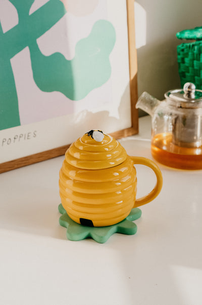 Bee-line for your morning XL coffee. The ribbed honey bee pot shape comes complete with a lid to keep your coffee warm whilst you are working. Comes complete with a box.