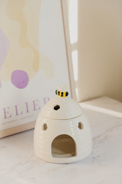 Heres to cosy evenings with the Honey Bee Ceramic Wax Melt Burner. The beehive shaped burner features a bee on the lid with honeycomb cutouts. Compatible with both fragrance oils and wax melts. Wax melts sold separately.