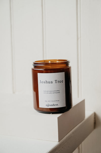 Dreams of cali camping under the stars with the Joshua Tree Soy Wax Candle. Expect top notes of birch and cedarwood set with kindling firewood and rich amber and bergamot.