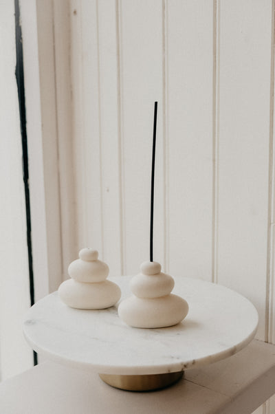 Relax in your space with the Laurie Cream Speckle Balancing Stones Incense Stick Holder. The minimal design will work with most interior types and can be paired with an incense scent of choice. Comes complete with a gift box.