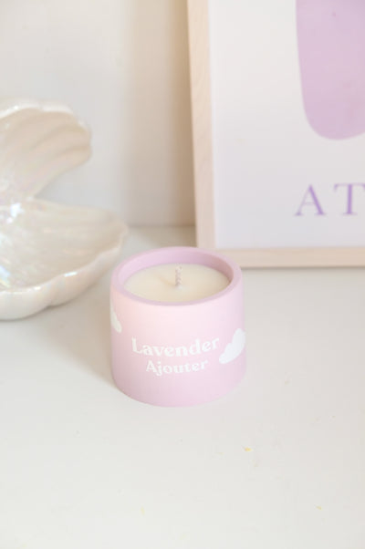 Burn to ignite the ultimate zen moment. We are here for your post-work rituals and the handmade Lavender Candle Jar will be your new cozy companion. Handmade at Ajouter HQ, this candle is infused with 100% natural Lavender and is complete with a lilac jar and white cloud detailing. When you are finished with the candle, the jar can be re-used for a pot of choice.
