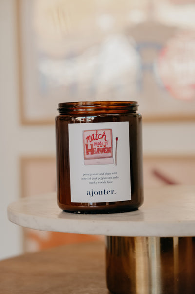 Strike a match to love season with Match Made in Heaven Valentines Soy Wax Candle. Expect pomegranate and plum with notes of pink peppercorn and a smooky wood base.