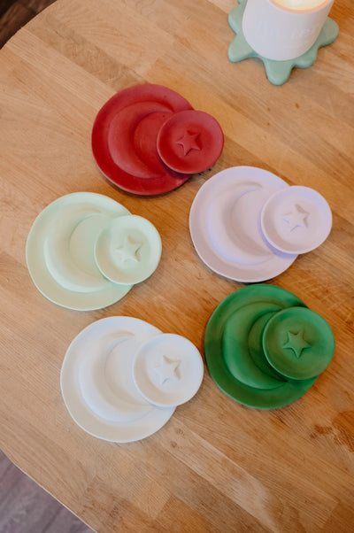 Home your best pieces safely and stylishly with the Moon and Star Celestial Trinket Tray Dish. Handmade at Ajouter HQ, these trinket trays features a moon and star. Avoid harsh cleaning products & scrubbing as this may alter the surface of the product. Each style is handmade and therefore they may be small bubbles and a slight colour difference due to the natural materials being used. Comes a set of 2.
