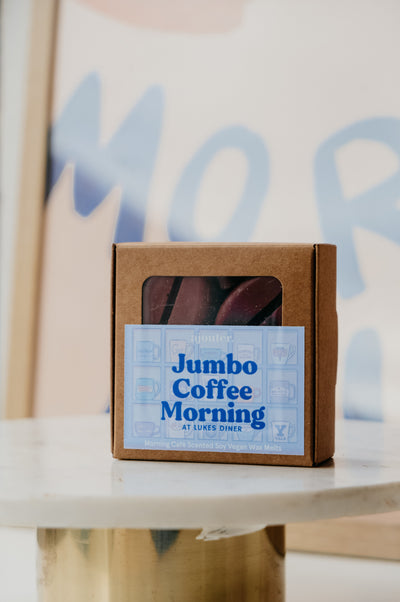 Its always a jumbo coffee morning! Expect the smell of Lukes Diner in the morning with our spiced biscuit and dark roast scent. Shaped it in jumbo coffee beans - which would be Lorelai Gilmore approved!