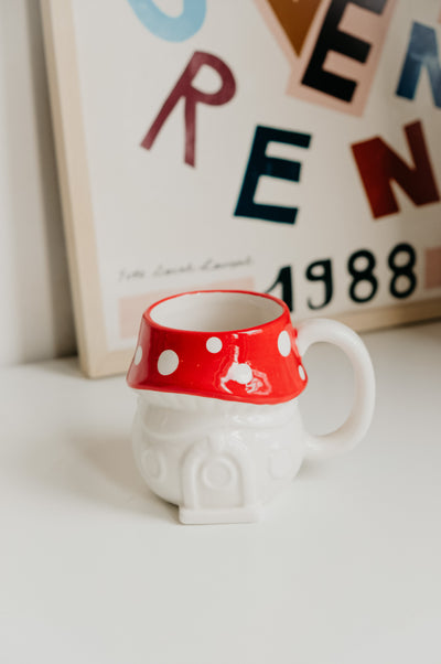 Make your morning extra cute with the Mushroom House Ceramic Coffee Mug. Expect a large mug in the shape of a mushroom house with classic red and white detailing. Can be paired with a matching wax melt burner and incense cone holder.