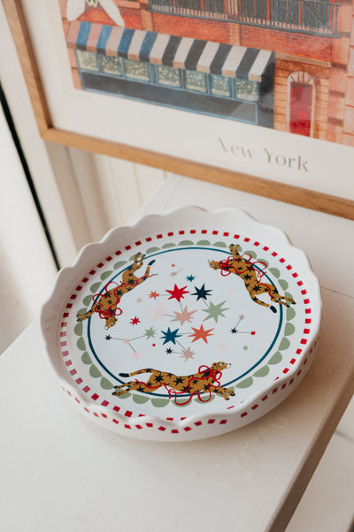 Whether to display your bakes or candles and best bits, this playful leopard stand features star features stars and bows. Whatever you choose to do with this piece you will be sure to impress your guests.