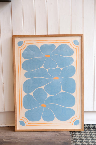Nostalgic Retro 70s Blue Flower Print 50cm x 70cm