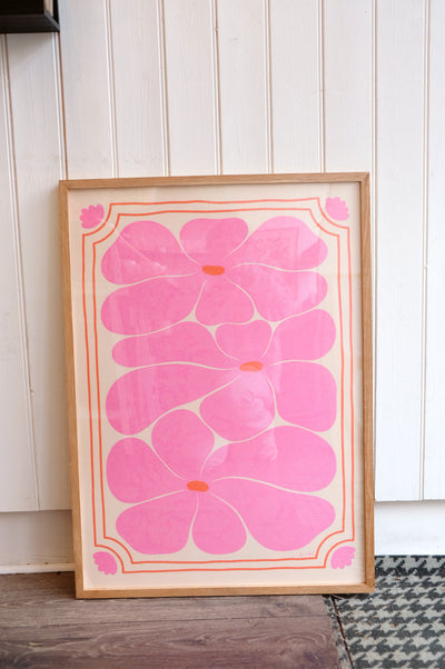 Nostalgic Retro 70s Pink Flower Print 50cm x 70cm