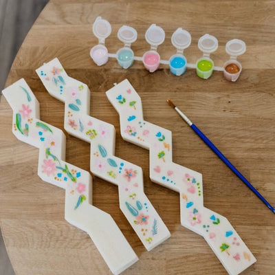 Add a personal touch to your interiors with the Ajouter Paint Your Own Bolt Pillar Candle Gift Set! Beret, glass of wine and an Ajouter Candle Paint Box for the perfect night-in. Coupling up? Select our double box (which includes enough for 2 people) for the the perfect date night. Whether it's dressing up your dining table, shelfie or as a gift, these candles are a unique take on the classic pillar style. Each candle is handmade at Ajouter HQ from 100% natural soy wax. Sending this item as a gift? Add a message at checkout and we will include a handwritten note.