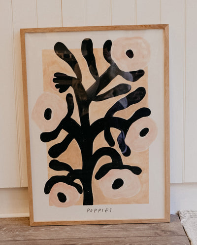 The Pale Poppies Floral Print is a grown-up yet playful addition to your space. Featuring nude and cream shades that are complimented with a strong contrasting black stems. Designed by Madelen Möllard, this print is suitable for home, office, museum, or gallery display.