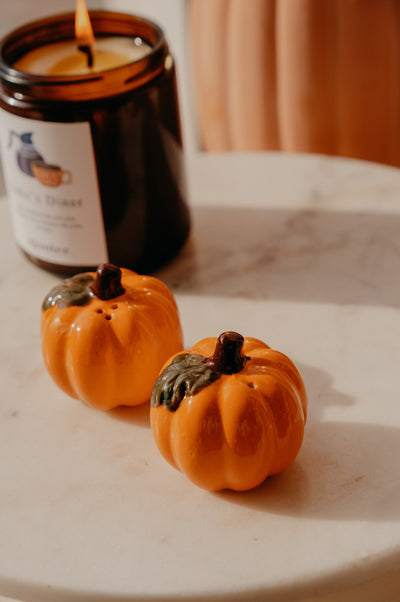 Get Harvest Festival ready with our pumpkin salt and pepper shakers. The fall home addition is a pretty yet practical addition to your home. Comes with a gift box.