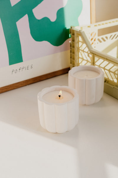 Strike a match into Spring with the Scalloped Pomegranate Noir Stone White Handmade. Expect top notes of juicy red fruits including pomegranate and plum with heart notes of pink pepper and casablanca lily which is complete with a smoky wood base. Once finished the jar can be cleaned and used as jar of choice.
