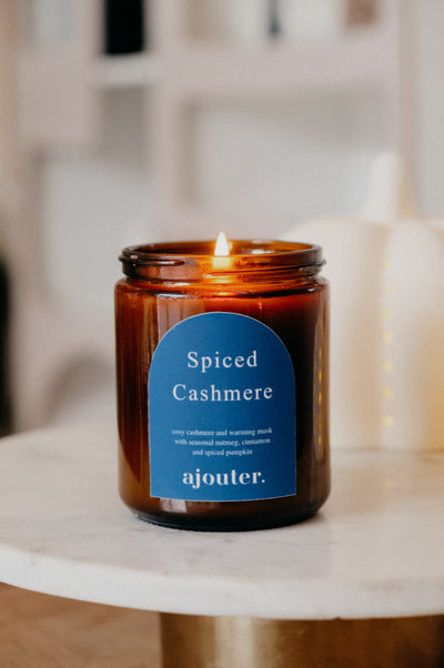 Cosy season is complete with the Spiced Cashmere Autumn Soy Wax Candle . Strike a match to cosy cashmere and warming musk with seasonal nutmeg, cinnamon and spiced pumpkin.