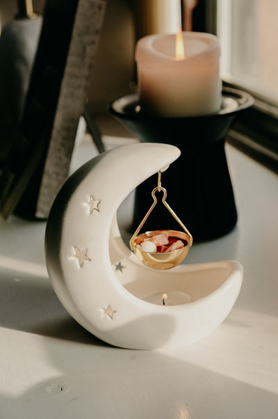 White Crescent Moon Star Gold Hanging Wax Melt Burner and Incense Cone Holder