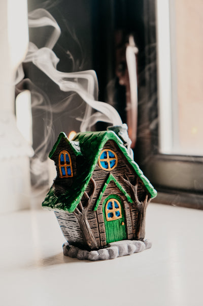 Cottagecore cuteness with this cabin incense cone burner. The classic cottage features vines, woody trees and cute little windows, making it for the most idyllic addition to your home. Lift off the top and put in a cone incense burner for a smokey chimney. Comes complete with a gift box. Select to add incense cones.